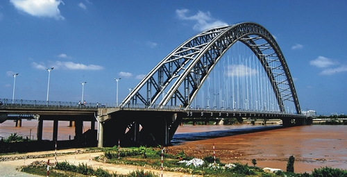广西南宁永和大桥 全长1402.15米,主跨338米,单跨下承式钢管砼变高度桁式有推力无铰拱桥,2004年10月建成通车。共46个吊装节段,单节段最大吊重121.8吨,公司承担吊装工程。