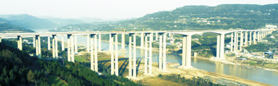 成(都)渝高速内江互通式立交桥 全长3699米,1997年12月建成通车。获交通部优质工程奖。