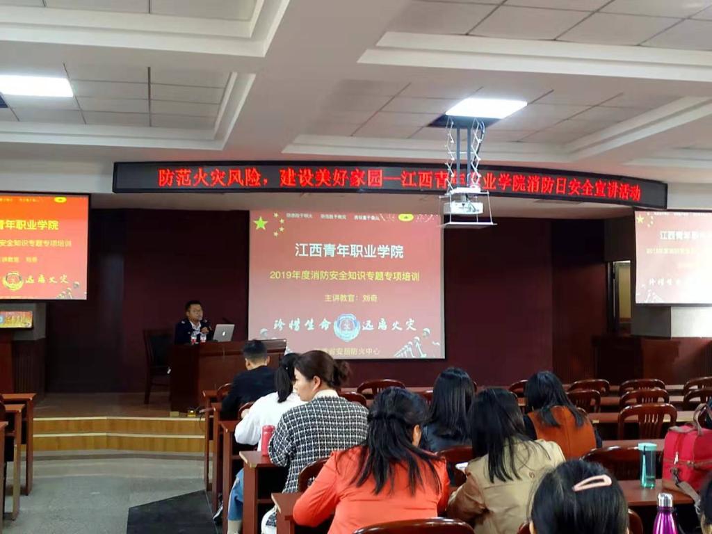 俗话说:“致富千日功,火烧当日穷”,道理大家都懂,但现实中人们往往忽视消防安全。为进一步提高全体教职工的消防安全意识,同时为了响应11月9日的全国“消防日”,学院于11月8日下午14:00-14:40在行政楼三楼多功能厅,特邀江西省安居防火中心的刘奇教官对全体教职工进行消防安全知识专题专项培训,开展了以“防范火灾风险,建设美好家园”为主题的消防日安全宣传活动讲座。