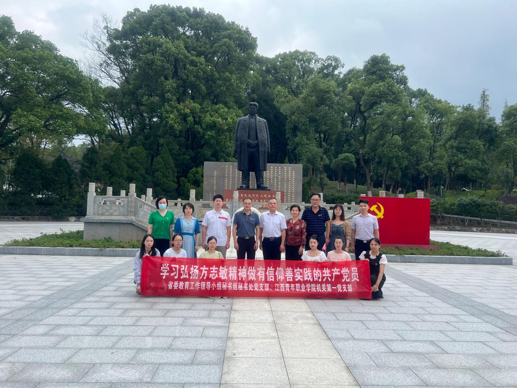 为推动主题教育走深走实,充分发挥基层党支部战斗堡垒作用,近日,省委教育工作领导小组秘书组秘书处党支部与学校机关第一党支部共赴方志敏烈士纪念园,联合开展了“学习弘扬方志敏精神 做有信仰善实践的共产党员”主题党日活动。省委教育工作领导小组秘书组秘书处处长杨联愚,学校党委委员、副院长刘安卿参加此次活动。