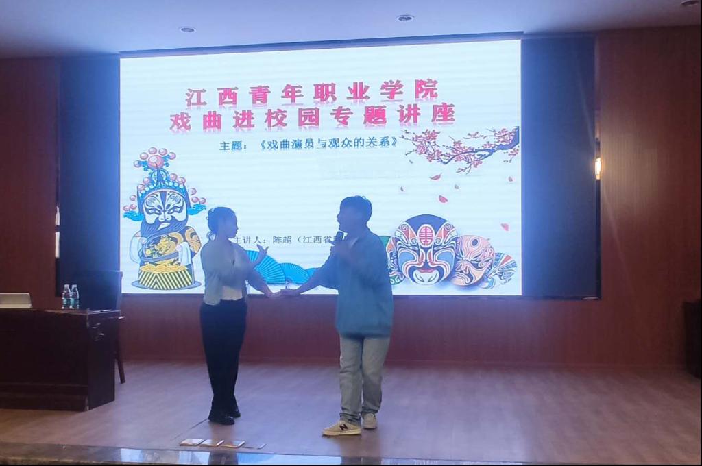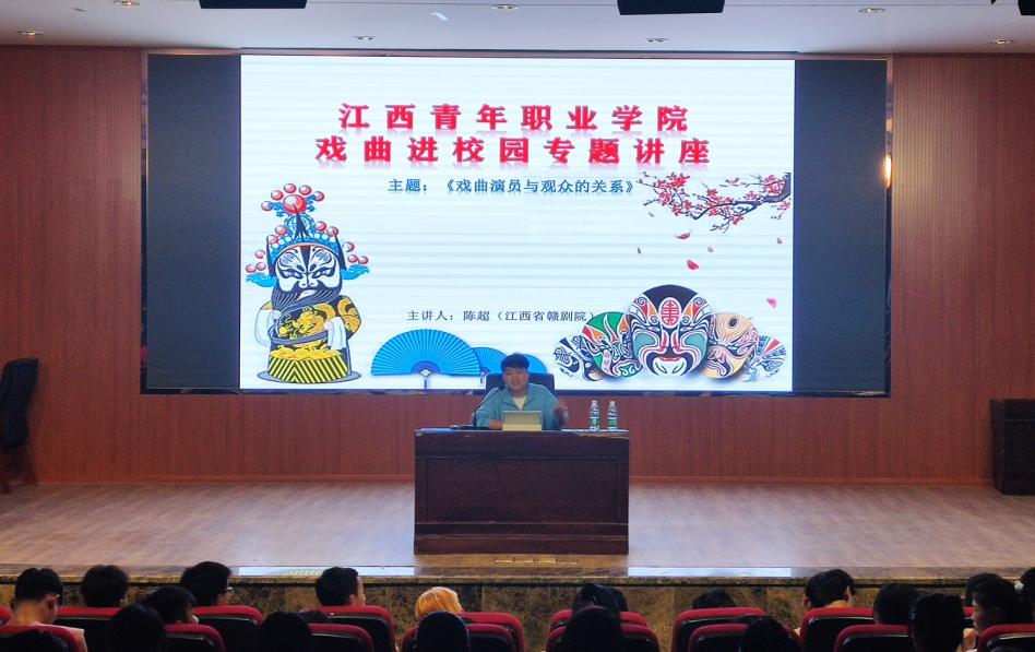 10月14日,公共基础部美育教研室在学术报告厅举办“戏曲进校园”系列活动之戏曲讲座。本次讲座主讲人为江西省赣剧院优秀青年教师陈超老师,该教师在2016-2019年参加省内外各项专项戏曲比赛,多次获得一、二等奖荣誉称号,代表作《临川四梦》曾赴国家大剧院、北京大学、清华大学演出。