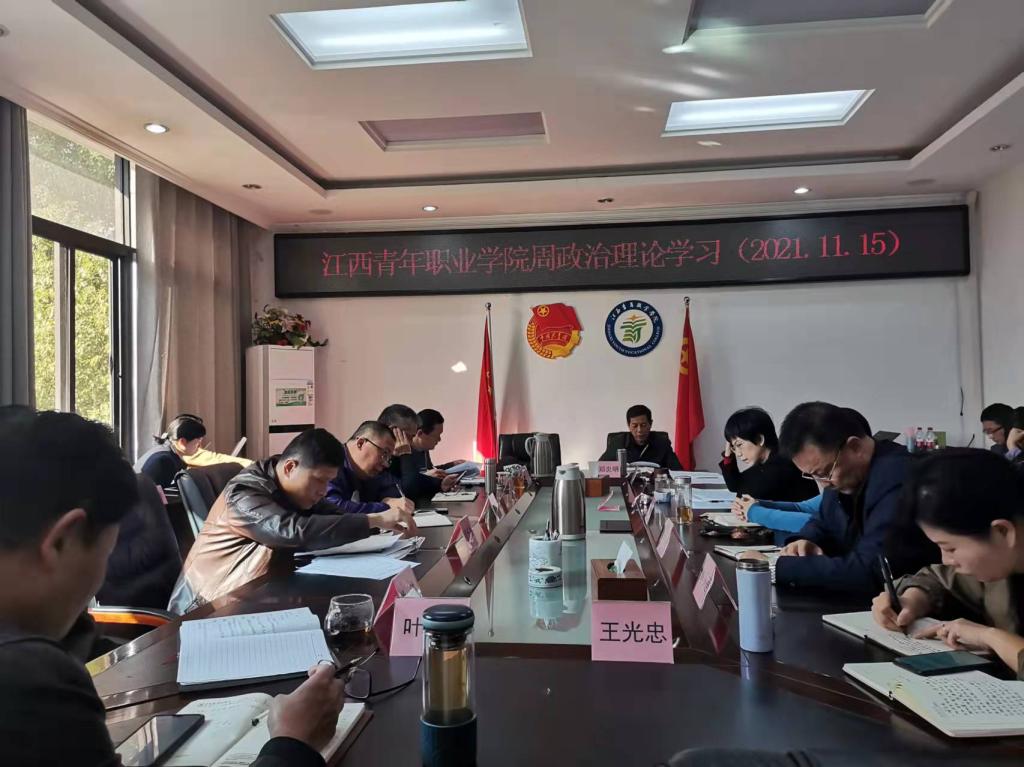 11月15日上午,我校在行政楼201会议室举行周政治理论学习,专题学习贯彻党的十九届六中全会精神。学习由党委副书记、院长郑炎明主持,党委班子成员和各部门主要负责人参加了学习。