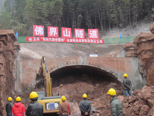 为保证打好佛界山隧道的第一仗,从征地拆迁、施工便道建设等方面,我司精心组织、标准化施工,克服征地拆迁难度大、机械材料运输不便、雨季施工困难大、洞口遇地质滑坡体等困难,迅速展开前期临建工程和洞口地质加固施工,历经近半年的努力使佛界山隧道进口洞身工程基本具备了进洞条件。