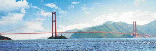 全长5452米,主桥长2588米,主跨1650米,两跨连续钢箱悬索桥,2009年12月建成通车,主跨居世界第二、国内第一。