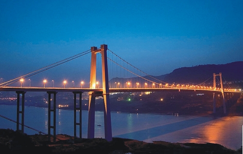 全长1148.86米,主跨580米,钢桁梁悬索桥,2003年6月建成通车。获2008年国家优质