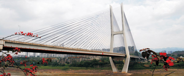 全长965米,主跨252米,独塔非对称性PC斜拉桥,主跨居同期同类桥梁国内第一,2003年11月建成通车。获2005年四川省天府杯金奖、四川省科技进步二等奖、国家优质工程银奖。