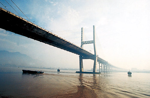 全长1826米,主跨276米,双塔双索面预应力砼斜拉桥,1998年12月建成通车。